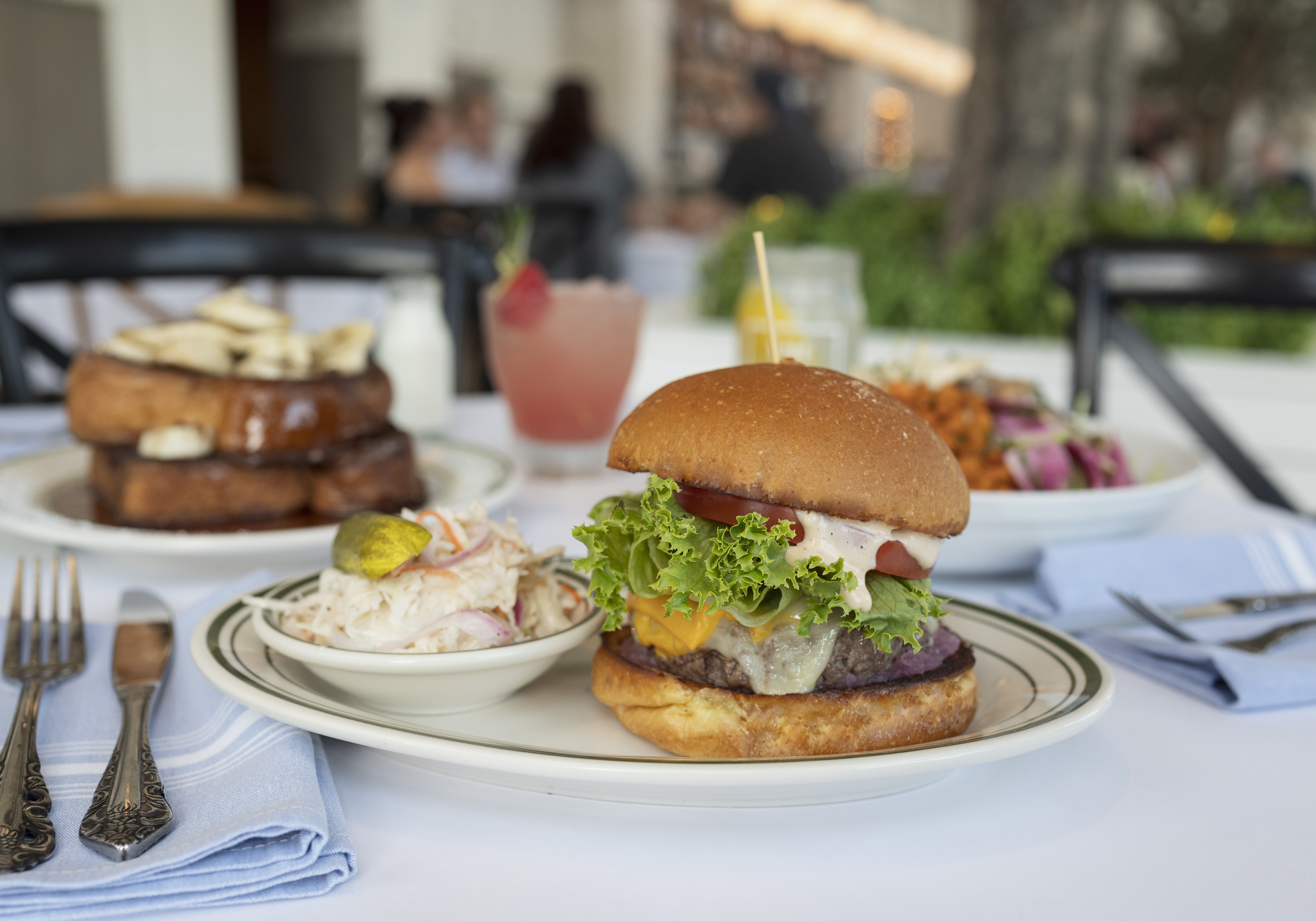 American comfort dishes for breakfast, lunch, and dinner, served in a casual setting.
