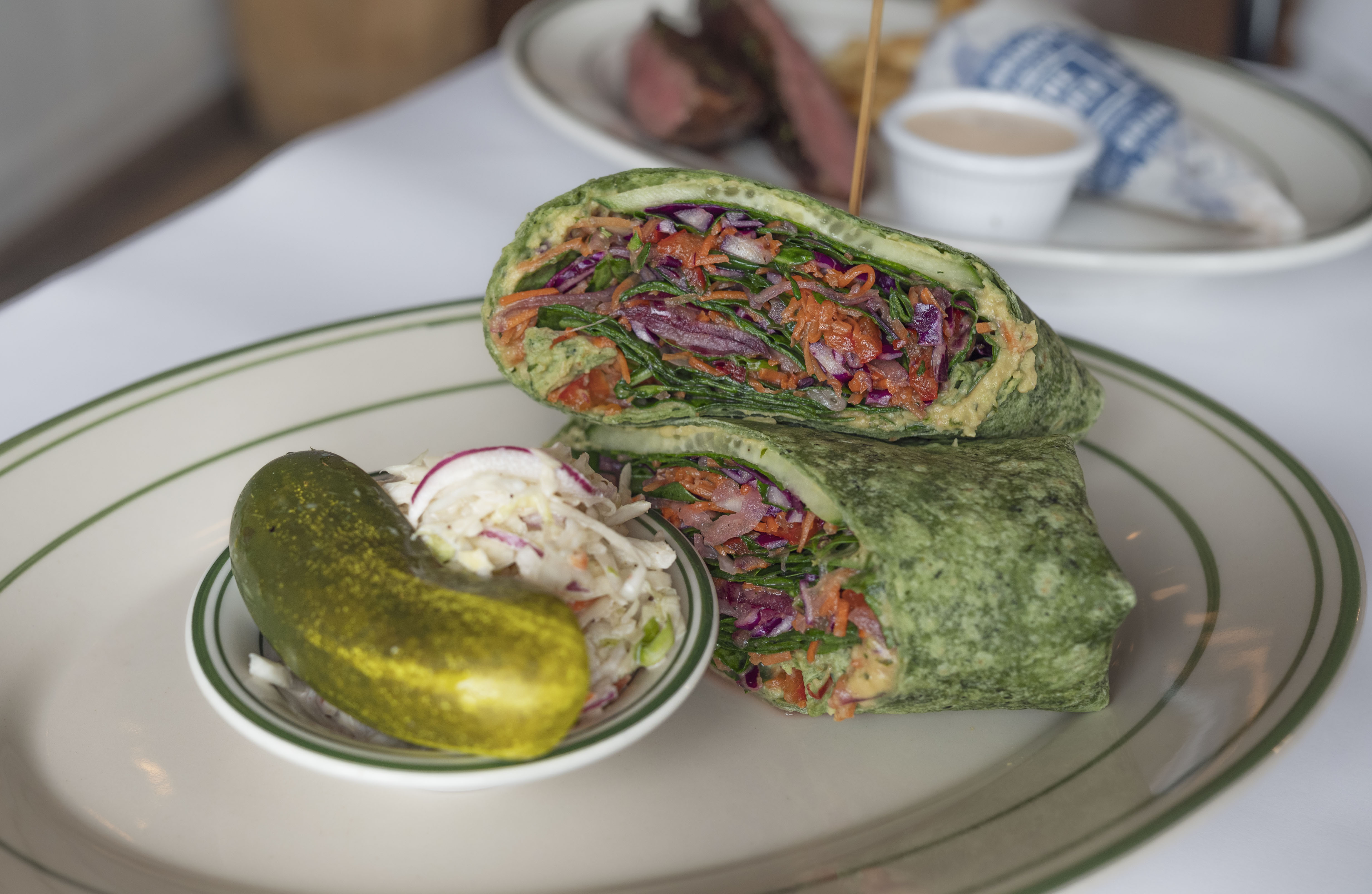 Basil Hummus, Cucumber, Cabbage, Spinach, Vegetable Slaw, Lemon Olive Oil