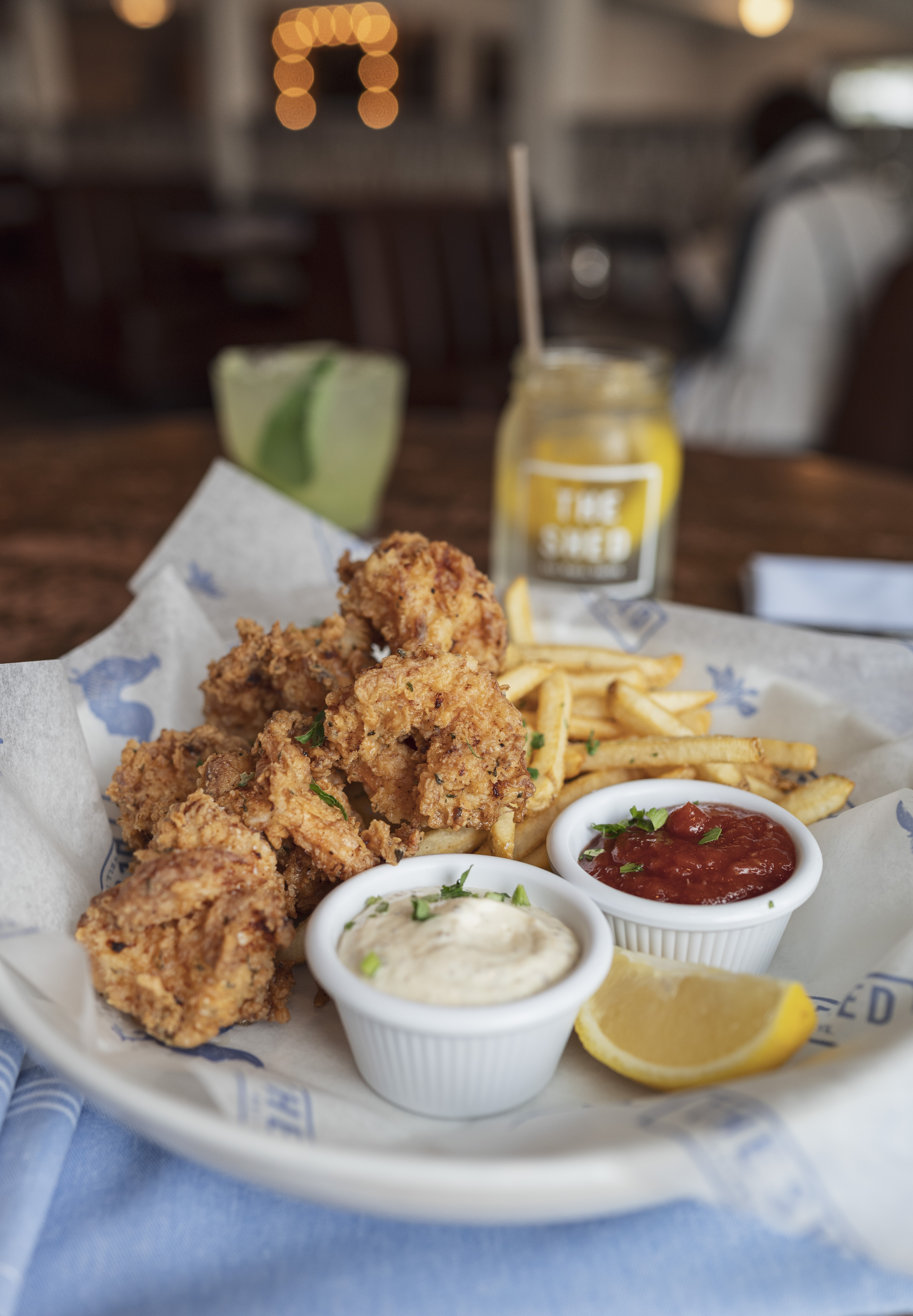 Crispy Jumbo Shrimp, Shed Fries, Tartar Sauce, Cocktail Sauce, Lemon