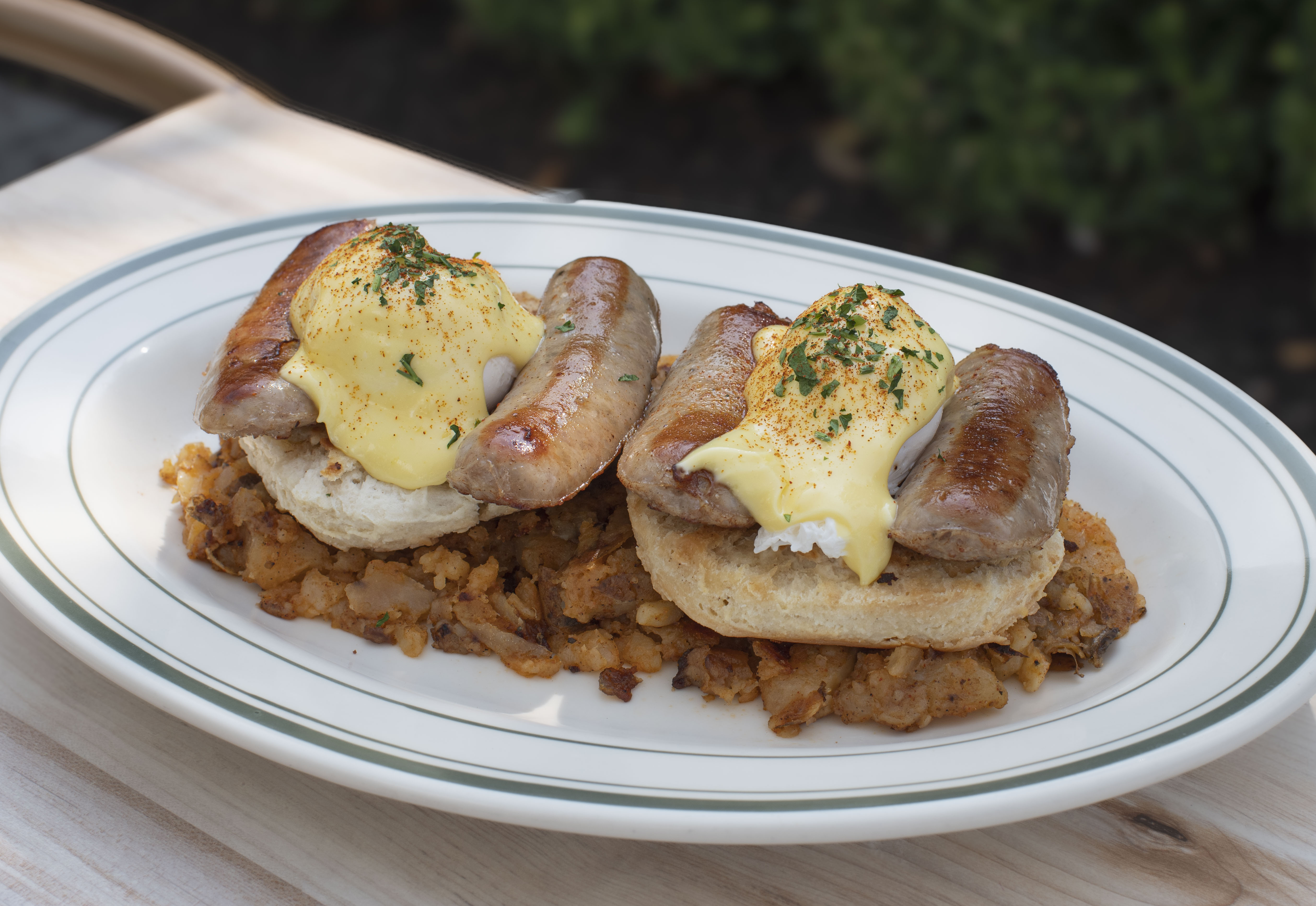 2 Eggs Poached*, Homefries, Hollandaise. Choice of: Bacon • Sausage • Smoked Salmon