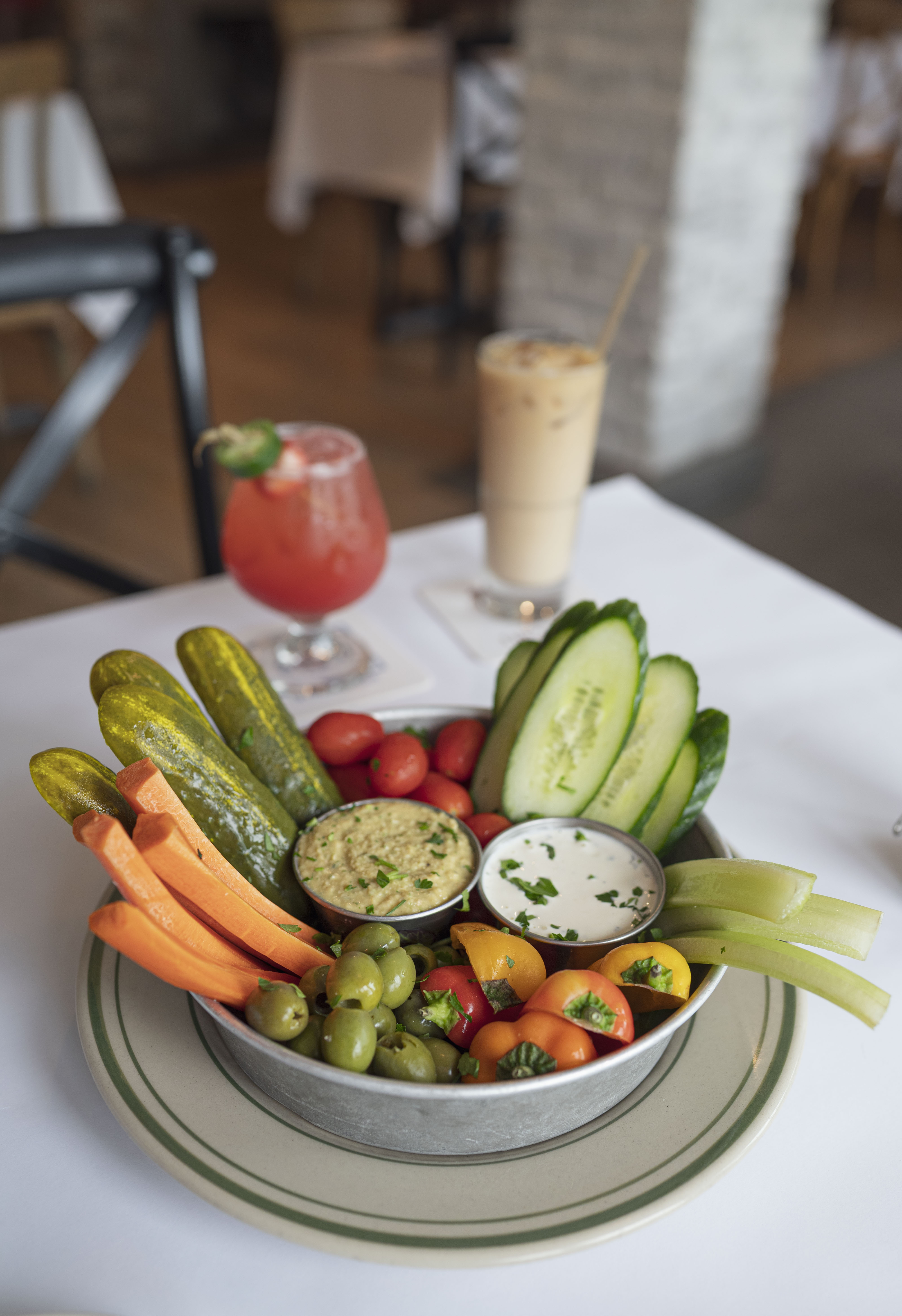 Basil Hummus, Horseradish Cream, Garden Veggies (GF)