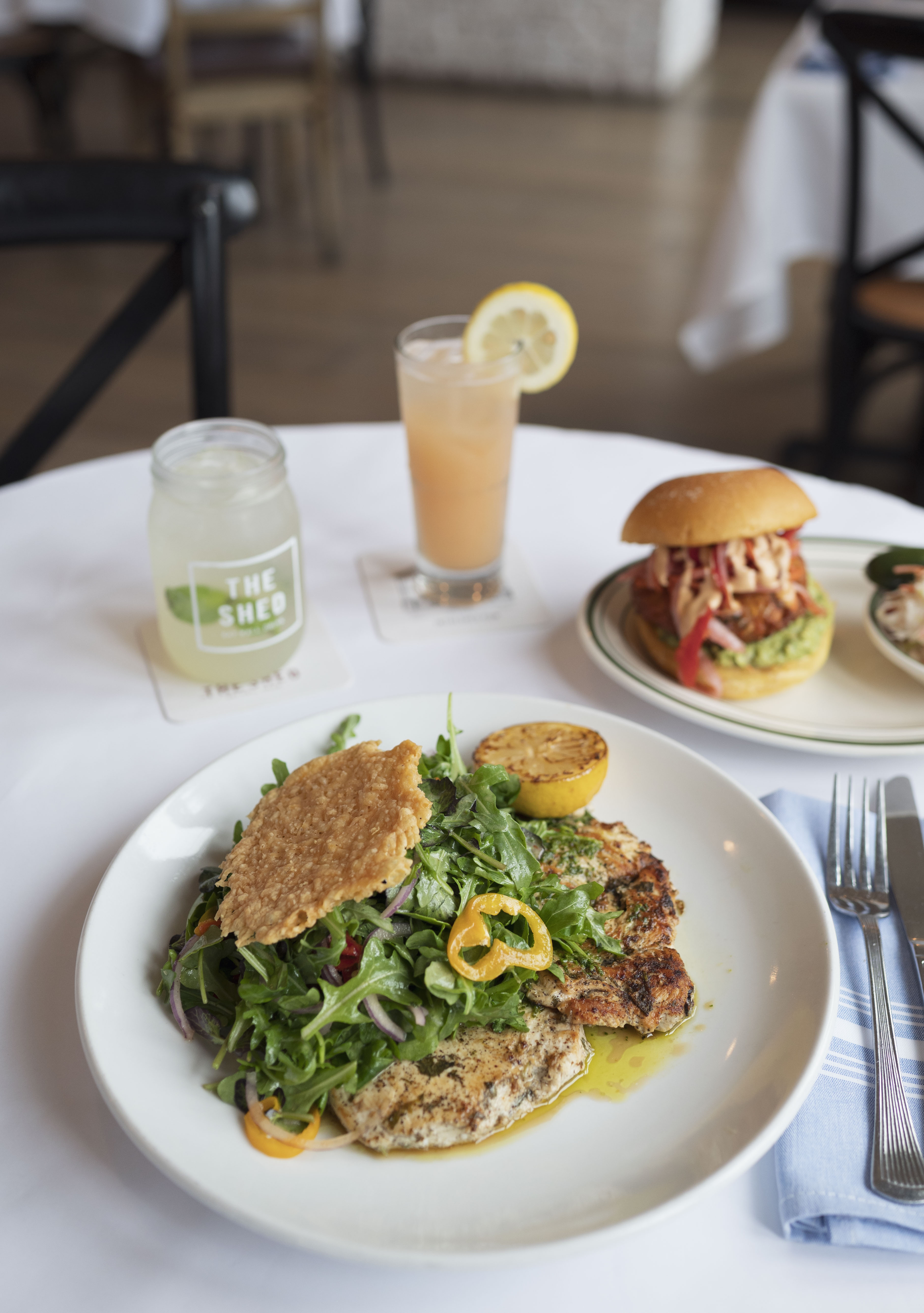 Grilled, Greens, Sweet Peppers, Red Onion, Basil, Lemon, Parmesan Crisp (GF)